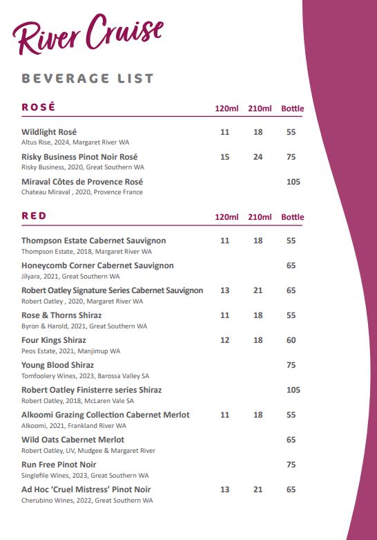 船長將於整段航程提供專業英文解說,從珀斯往返 Barrack Street Jetty,讓旅客在優雅的午後更加了解這條迷人的河流。