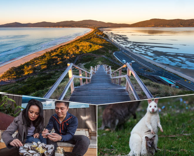 穿過霍巴特市區南行,抵達輪渡碼頭乘坐輪渡20 分鐘後抵達布魯尼島(Bruny Island),沿著海岸線行駛,穿梭於森林間,前往著名的南北一線,這條狹長的小徑,如同細線一般將布尼島的南部和北部鏈接起來,兩側都是一望無際的大海。這裡也是企鵝歸巢的棲息地。午餐後,前往島上的生蠔農場,品嚐塔州最美味的生蠔(自費)。觀光魯尼島上熱鬧非凡的冒險灣,尋找布魯尼島上獨有的白色袋鼠。島上的山林間還藏有一些小店,可吃奶酪,嘗海鮮,甚至可來一杯威士忌。
