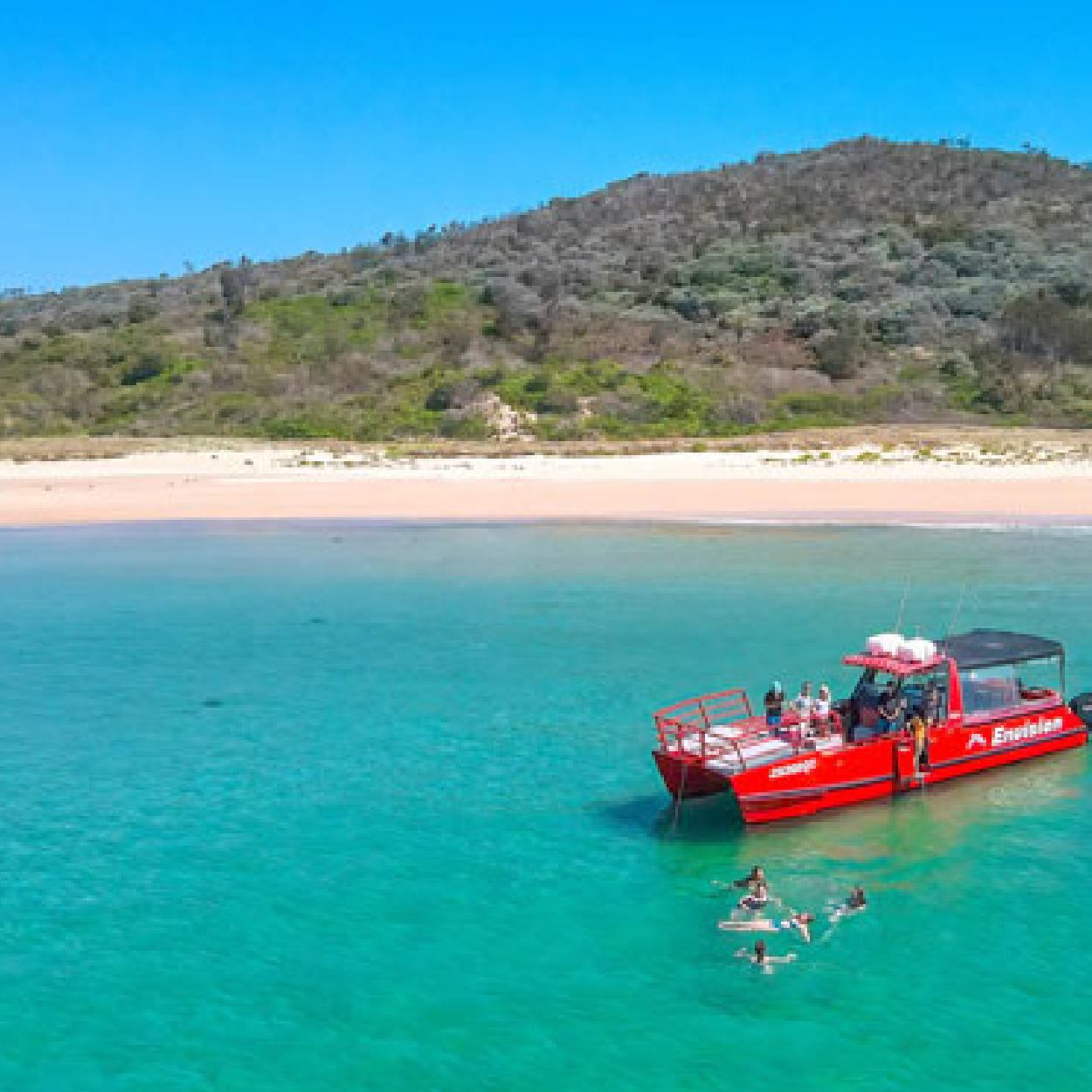 從悉尼出發北上中央海岸,前往Nelson Bay港口乘坐遊船觀看港灣內的野生海豚,它是澳大利亞著名的觀賞海豚的港灣,也是一處遠離喧囂的淨土。它隱匿於一個向內陸延伸20公里的隱蔽山谷中,距離新南威爾士北部城市紐卡斯爾僅1小時的車程,距離悉市區2.5小時的車程。擁有碧海藍天,被稱為“藍水天堂”,以各種戶外運動和海中活潑可愛的海豚出名。夏季時,可穿梭泳衣在船尾網繩內與海豚親密接觸。遊船後,前往安娜灣(Anna Bay),乘坐四驅車進去27公里的大自然沙漠,進行沙漠滑沙Sand Boarding。
