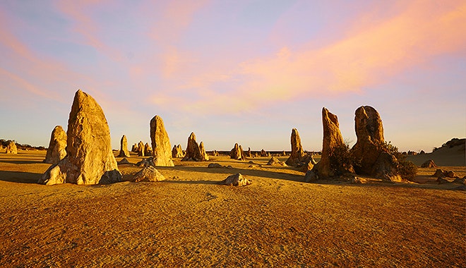 首先前往尖峰石陣(The Pinnacles),位於南邦國家公園(Nambung National Park),位於南邦國家公園之內,是印度洋邊神奇的樹根化石沙漠,如今彷彿一片奇異的金色外太空星球,是來西澳不可錯過的打卡地標。