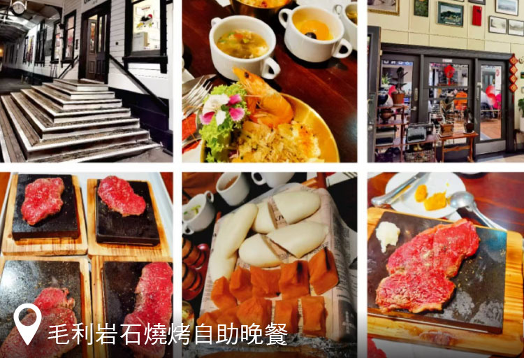 - 餐食:早餐 — 酒店西式;午餐 — 中式小火鍋;晚餐 — 毛利岩石燒烤餐,原汁原味的南島風味大餐