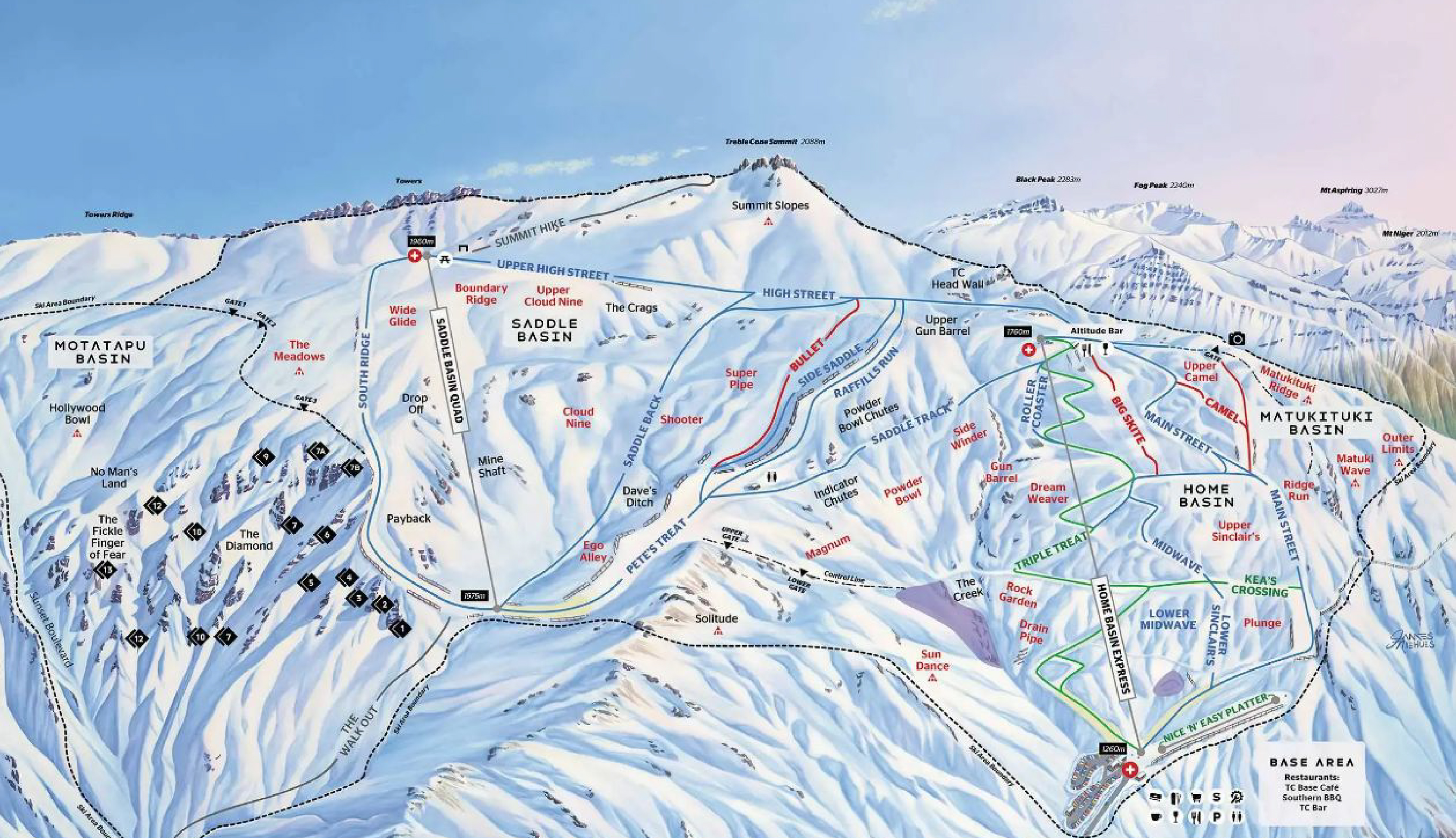 🏔 Treble Cone 三錐山滑雪場:6月28日 – 9月28日
