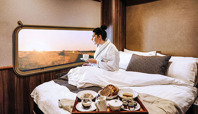 白金艙房提供奢華的額外服務,如全尺寸的套房、從火車上的寬敞窗戶欣賞景色,以及獨家使用白金俱樂部車廂。再加上奢華的床單、法國香檳、Bracegirdle的巧克力、入睡前的夜酒等等,您將度過一次非凡的體驗。
