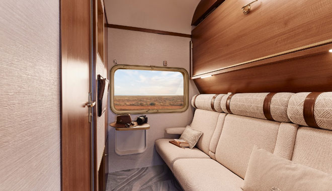 在黃金高級雙人艙或黃金高級套房之間進行選擇,後者提供了更多的空間。無論您選擇哪種艙房,黃金高級都將帶您踏上2024年全新風格的火車旅行。