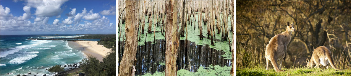 下午 16:30,野生袋鼠保護區 (Coombabah Lake Conservation Park):前往野生動物的自然棲息地。這裡可以見到成群結隊的袋鼠在草原奔跑,抬頭尋找,或許能發現正在桉樹上打瞌睡的無尾熊!