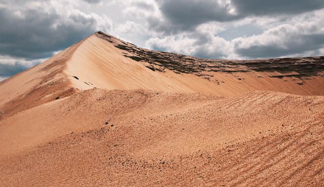 沙丘上的「馬背」,隨著暴露的107萬年前的火山灰層構成,這些皆為大自然透過無數年時間所形成的自然美景。「馬背」位於沙丘上,並以暴露出的火山灰層為背景,這些火山灰層可追溯至約107萬年前,都是大自然經過漫長時間所造就的自然奇景,還能搭乘纜車可以輕鬆俯瞰整個沙丘的壯麗景色。