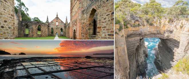 亞瑟港(Port Arthur)是殖民時代流放罪犯的遺址,19 世紀南半球最大的監獄,也是澳洲目前保存最完好的監獄古蹟。亞瑟港的人文歷史和塔斯曼半島的美麗風景成為塔斯馬尼亞最著名的旅遊熱點之一。每一位前往塔斯馬尼亞的遊客都會專程到訪亞瑟港監獄遺址(Port Arthur Historic Site,門票自理,價格參考下列) 。去往亞瑟港監獄途中,我們還將遊覽塔司曼半島四大自然奇觀:塔司曼拱洞,魔鬼廚房,棋磐石,噴水洞。