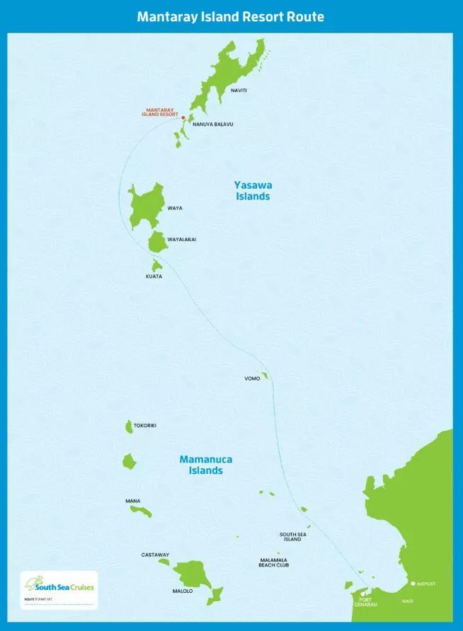 從丹娜努港(Port Denarau)出發,搭乘高速雙體船前往 Yasawa 群島。船程途中會經過 Mamanuca 與 Yasawa Islands(單程約 3 小時),並依序停靠度假村接送旅客。抵達後將登陸至 Mantaray Island Resort 展開你的蝠鱝探索之旅。