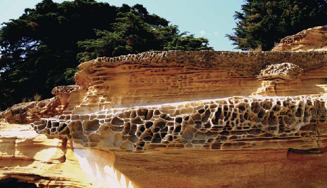 首先遊玩達靈頓(Darlington),這裡有很多古老建築的遺跡及廢墟,“遊客中心”為客人提供瞭豐富的島嶼信息。之後徒步遊玩彩繪崖(Painted Cliff)及化石崖(Fossil Cliff),前者由於氧化鐵而使得岩石出現各種不同的圖案和顏色,而後者則在峭壁上可以看到2.6億萬年前海底生物形成的化石。下午返回達靈頓,乘坐16:15pm的渡輪返回Triabunna。行程結束後,導遊送客人回霍巴特酒店。