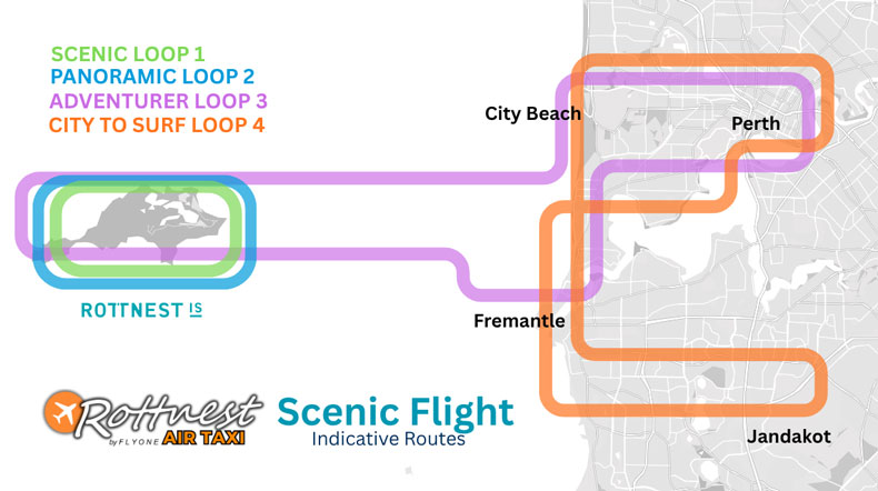 超高人氣組合線路!從羅特尼斯島飛至珀斯市區,沿著海岸線俯瞰都市海灘、鳥瞰印度洋、珀斯市中心、Optus Stadium、天鵝河,再返回羅特尼斯島。完美結合河景,城市,海島的三重奏美景,性價比高。