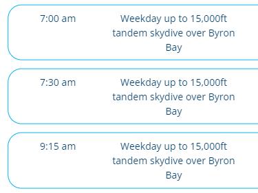 若您選擇自行駕車前往跳傘區,可選擇以下跳傘時段: