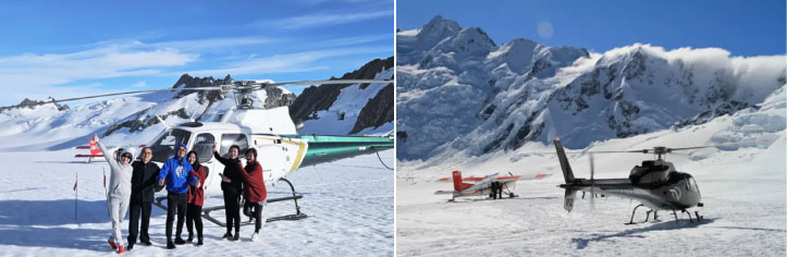 - 全程包括在新西蘭最長的冰川 — 塔斯曼冰川上的10-15分鐘著陸。