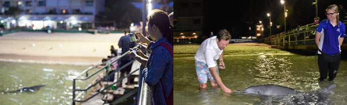 使用日間休息室, 碼頭觀賞野生海豚在海灘被餵食樂趣
