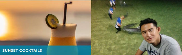 讓您的旅程網美升級,親眼觀賞野生海豚洄遊,海豚日落返回岸邊安靜的等待,像完成一場約會一樣。此為日落雞尾酒套餐 ,包含一張調酒卷(亦可選軟飲)