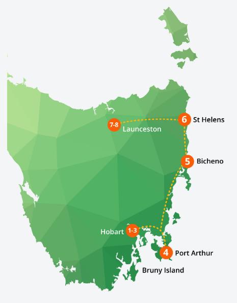 目睹我們壯麗的海岸線、珍稀且卓越的野生動物在其自然棲息地中、豐富的罪犯歷史、特殊的藝術場景和多樣的美食選擇。我們可以向您保證,在這個獨特的南半球島嶼上,這將會是適合您的活動。