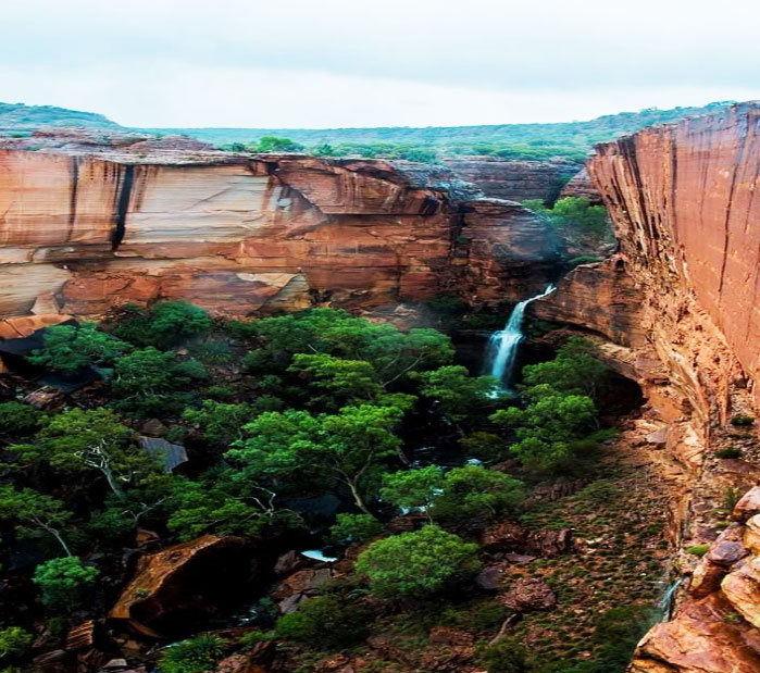 帝王谷是一條落差達近100米,綿延1公里的宏偉峽谷,底部有一條名為帝王溪(Kings Creek)的小溪。帝王谷不僅是澳大利亞景色最壯觀的峽谷,也是澳大利亞內陸紅土中心最壯觀景色的代表地之一。帝王谷有著健行小徑、茂密的森林以及永久性水潭,峽谷險峻的紅色岩壁從茂密的棕櫚、蕨類和桉樹叢林高聳而出,守護著叢林免受沙漠的侵襲,為當地動物提供了溫暖的港灣。數萬年來,這裡一直是土著居民路里加人(Luritja)的家園。