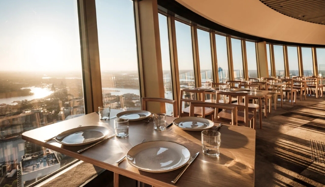 As the restaurant slowly rotates, enjoy a breathtaking 360° view — from the Harbour Bridge and Opera House to the glittering city skyline 💫